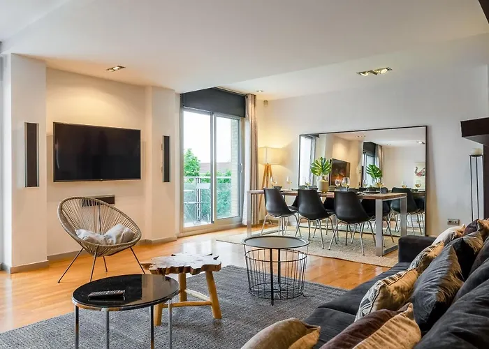 Dotato di servizi benessere quali una piscina all'aperto, l'appartamento di 140 m² Lodging Apartments Beach Penthouse Near Center With Pool è situato a circa 4 km dal Parco Güell. Quest'appartamento offre anche un parcheggio privato gratuito nella struttura.